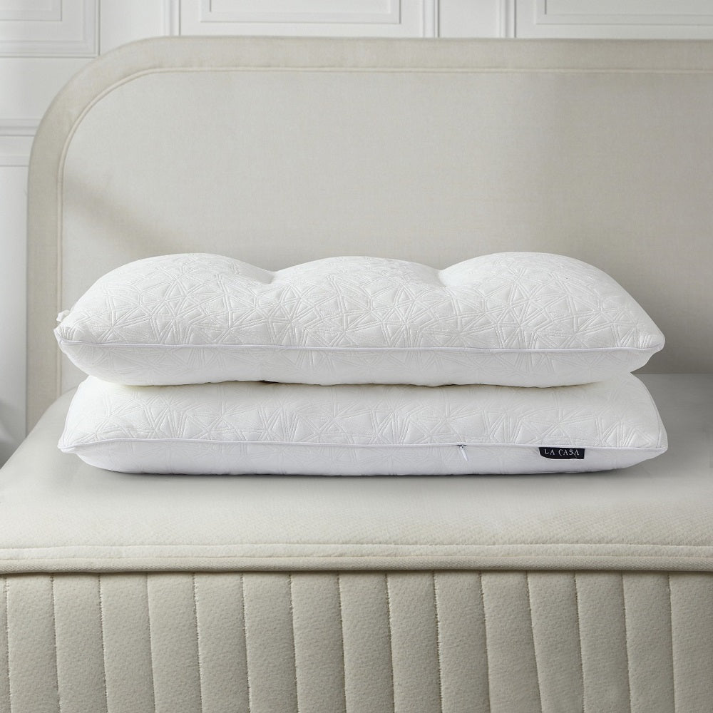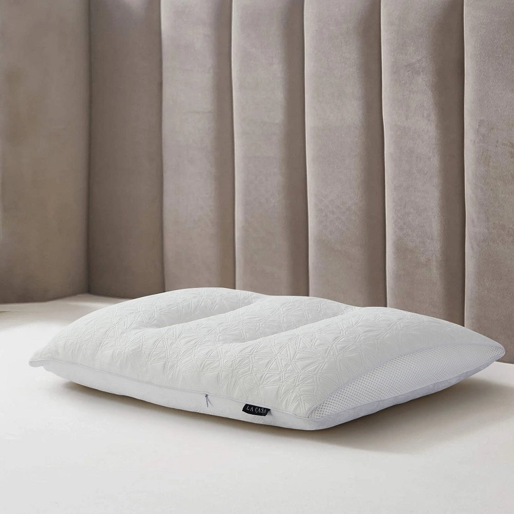 A lofty, luxurious, and supportive alternative to down. The Eden is made with a blend of cooling gel-infused memory foam and microfiber and is ideal for those who want to sink into softness yet remain supported.